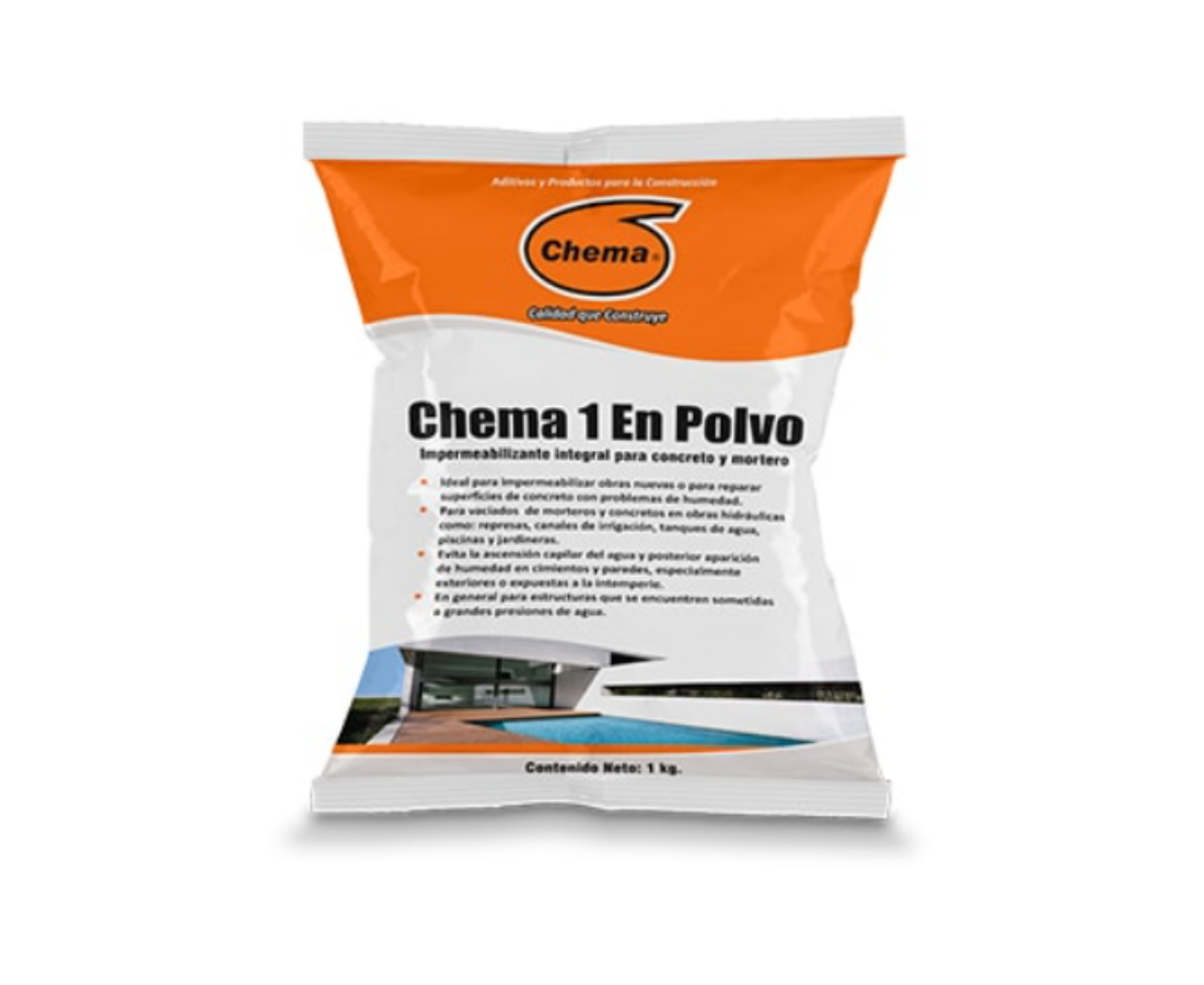Aditivo que se mezcla con los agregados secos para impermeabilizar (prevenir la humedad y salitre) en construcciones nuevas. Usos: estructuras cercanas al mar, terrenos con alta humedad, obras hidráulicas, tanques de agua, piscina o jardineras.